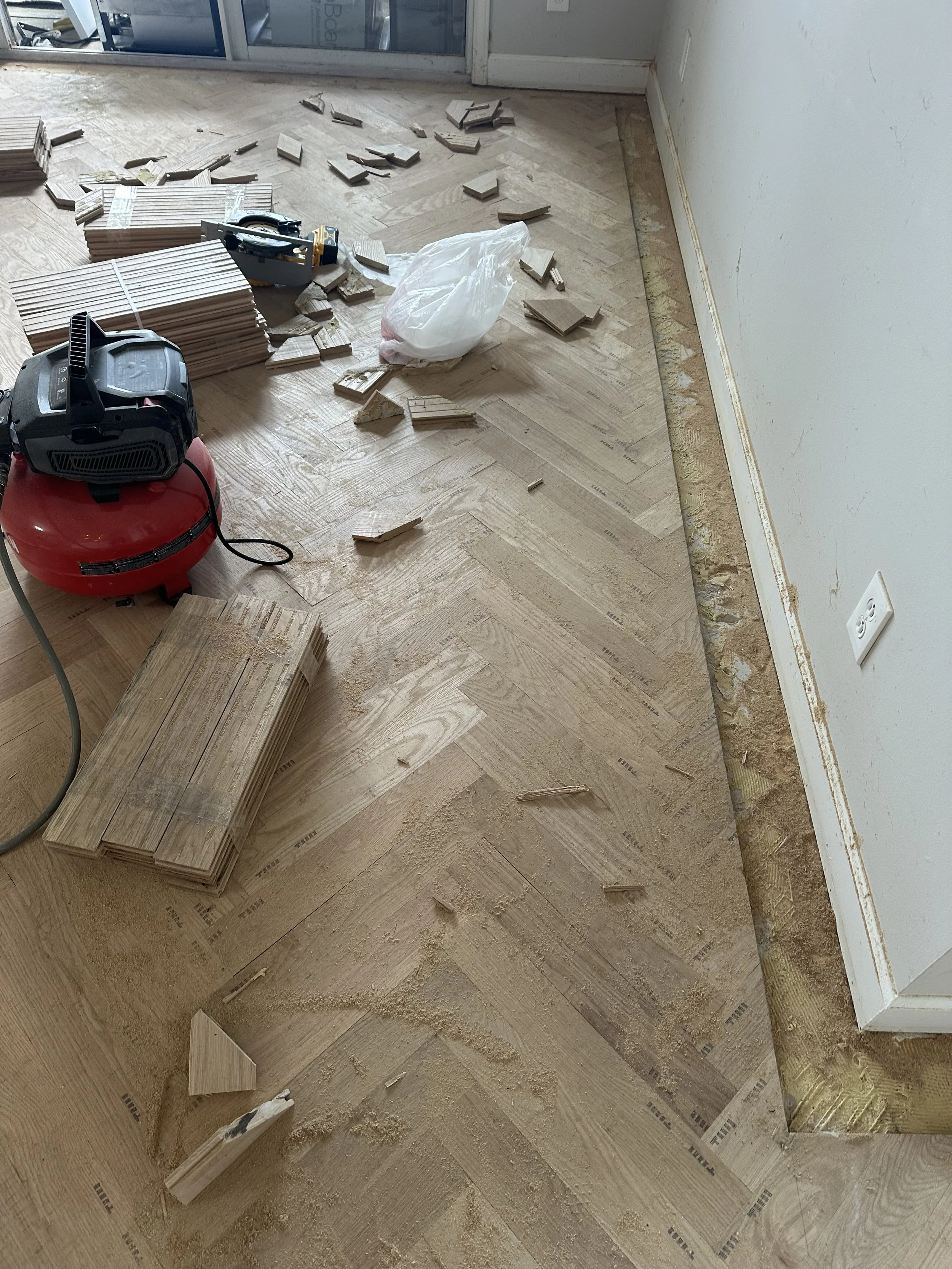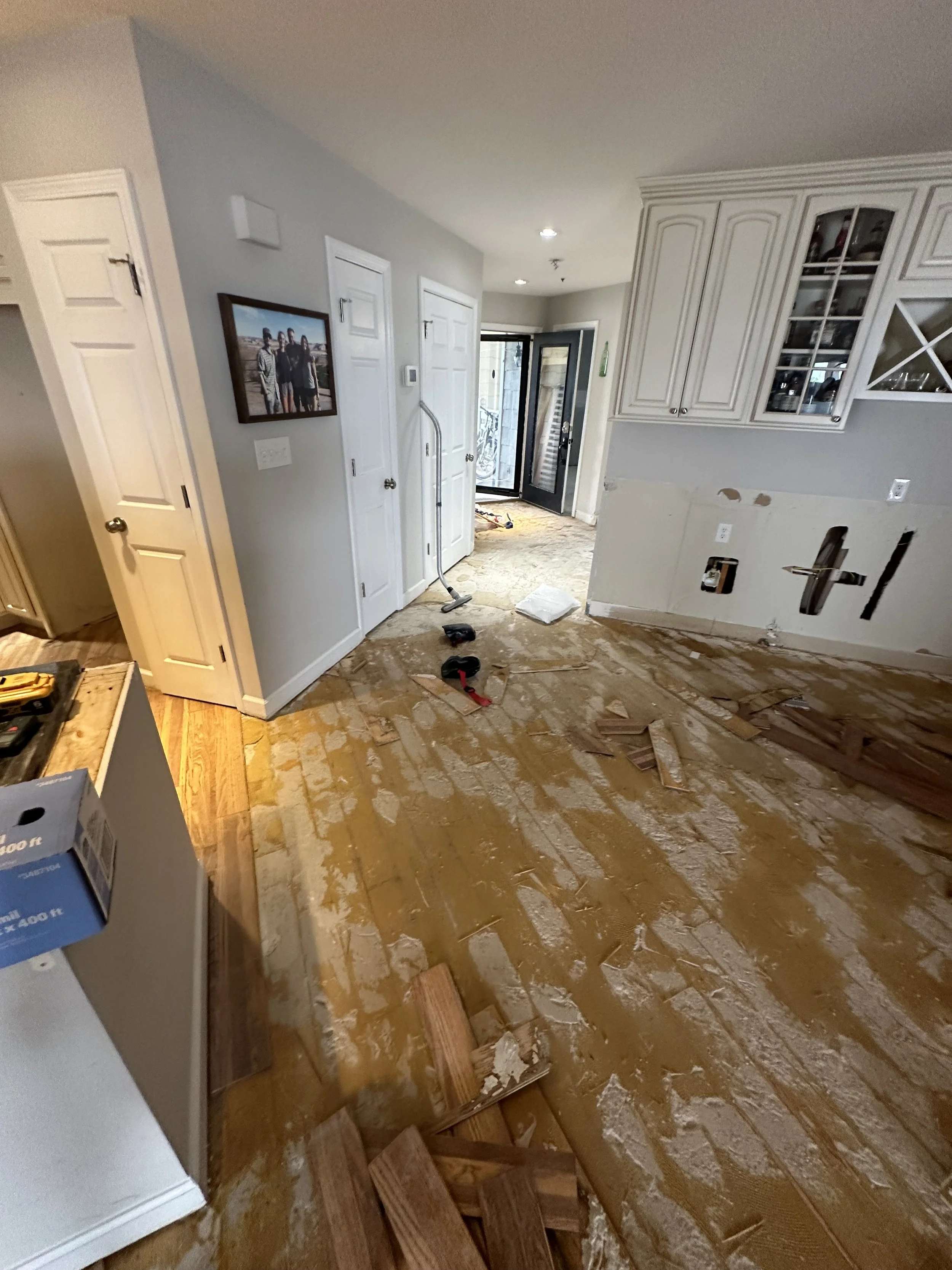 Challenge: Pipe burst in customer’s apartment ruined old flooring and needed to be replaced